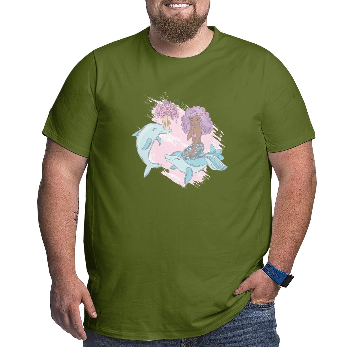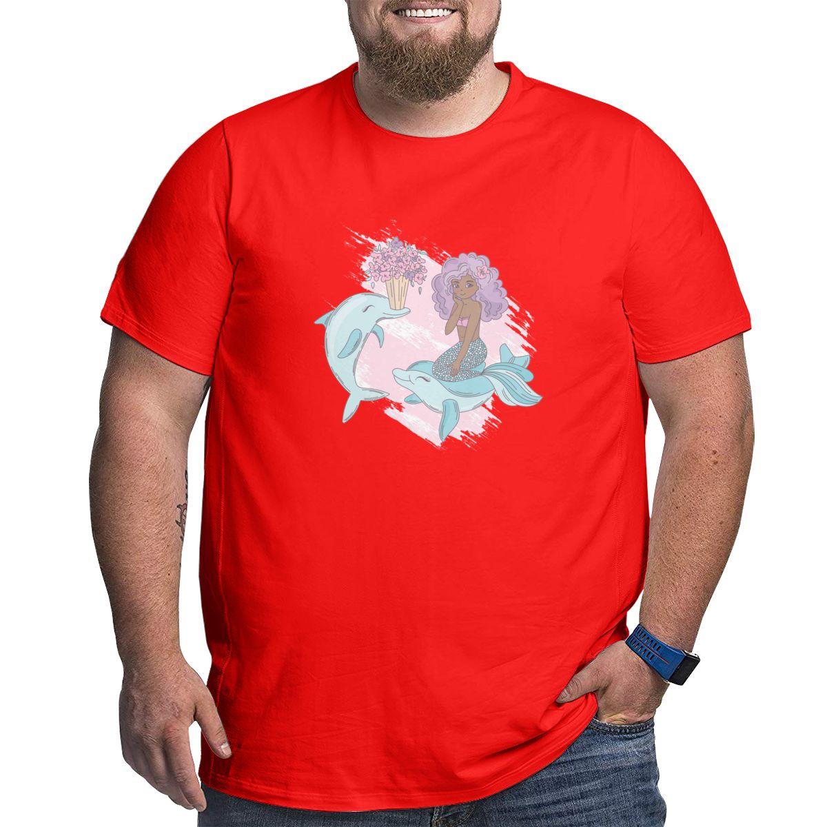 Cartoon Dolphin Courtship Mermaid Big Size Men's T-shirt