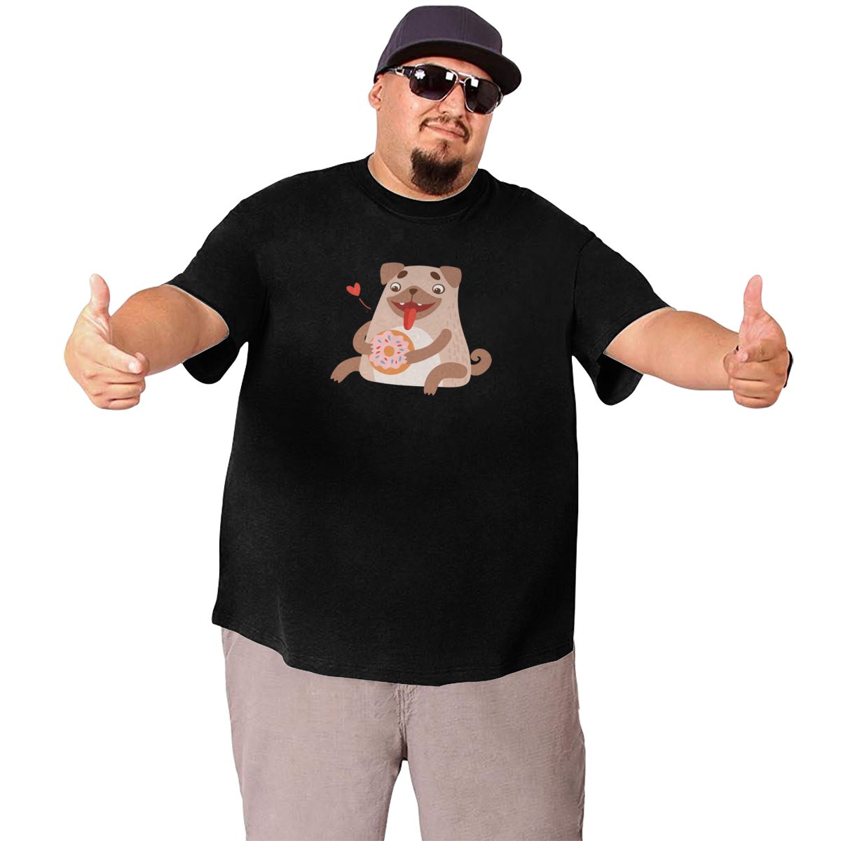Cute Pug Dog Eating Donut Big Size Men's T-shirt