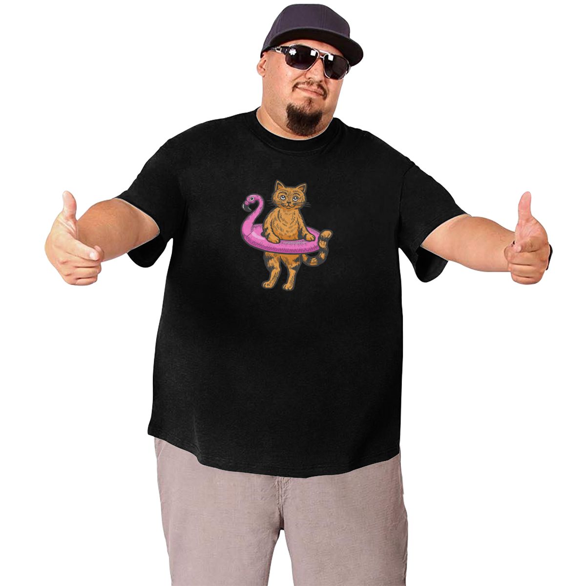 Flamingo Swims Around The Cat Big Size Men's T-shirt